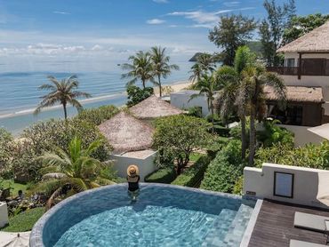 Located on the picturesque Pak Nam Pran Bay, its beach is a mecca for kite surfing enthusiasts from around the world, and this tropical paradise surrounded by sand, sea and swaying palms welcomes guests among authentically styled Ocean View Residences and Beach Front Villas, many with thatched roofs and others with a rooftop deck, most of which enjoy their own private plunge pools and pristine gardens, just steps from the sea.