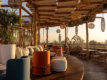 Undeniably the best rooftop in Marrakech, it guarantees breathtaking 360-degree panoramic views of the Red City and the Atlas Mountains, located in the middle of an urban garden designed around a circular swimming pool & cabanas, an expansive terrace, & relaxing dining & bar areas, exuding chic exclusivity, featuring internationally renowned DJs and local artists, its the ideal place to sip a cocktail and enjoy the Marrakech sunset from the best stage in the Red City.